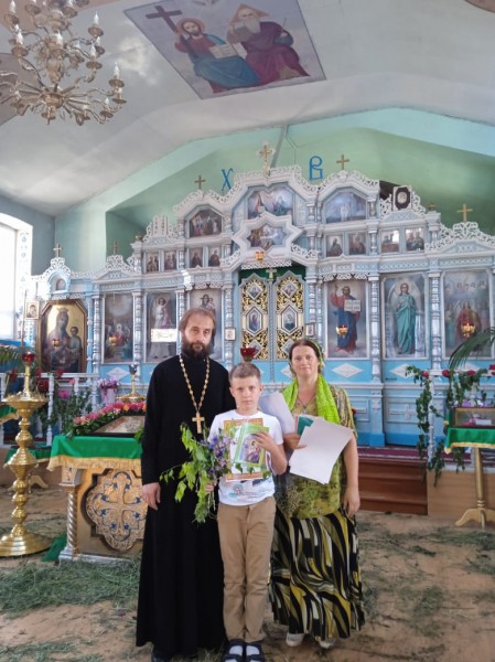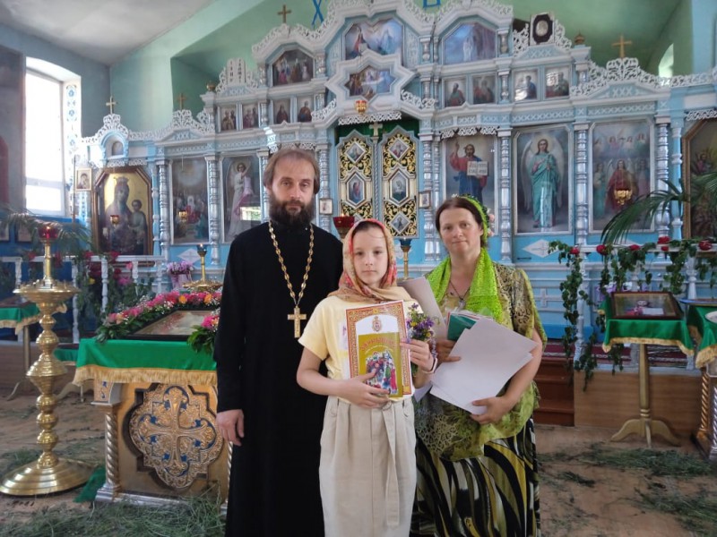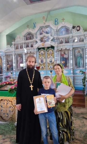 По традиции в церковно - приходской воскресной школе «Благовест" храма Архистратига Михаила п. Каменоломни Октябрьского района, после подведения итогов учебного года в праздник Пятидесятницы настоятель храма протоиерей Сергий Яценко благословил детей на душе полезное время провождения летних каникул и наградил их Грамотами и Дипломами за активное участие в Международных, областных, епархиальных и районных конкурсах детского творчества, фестивалях и концертах.