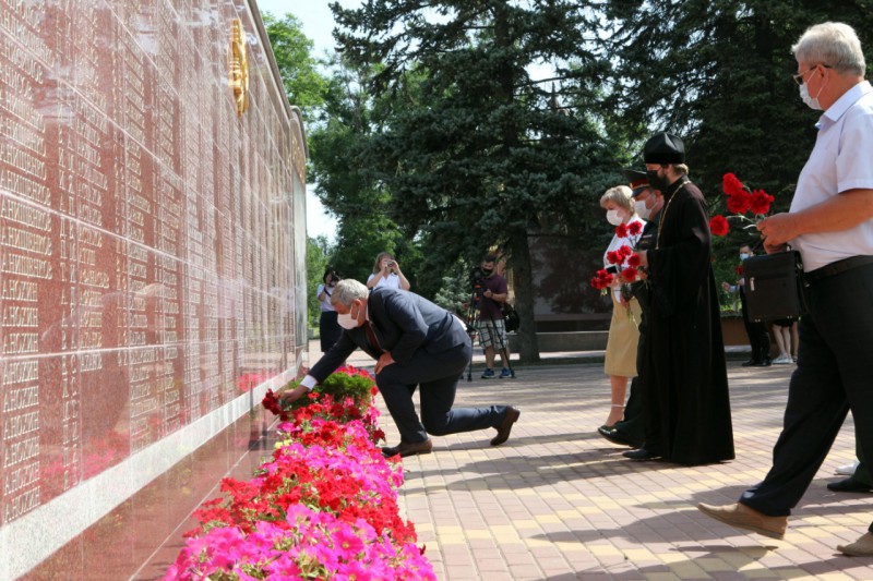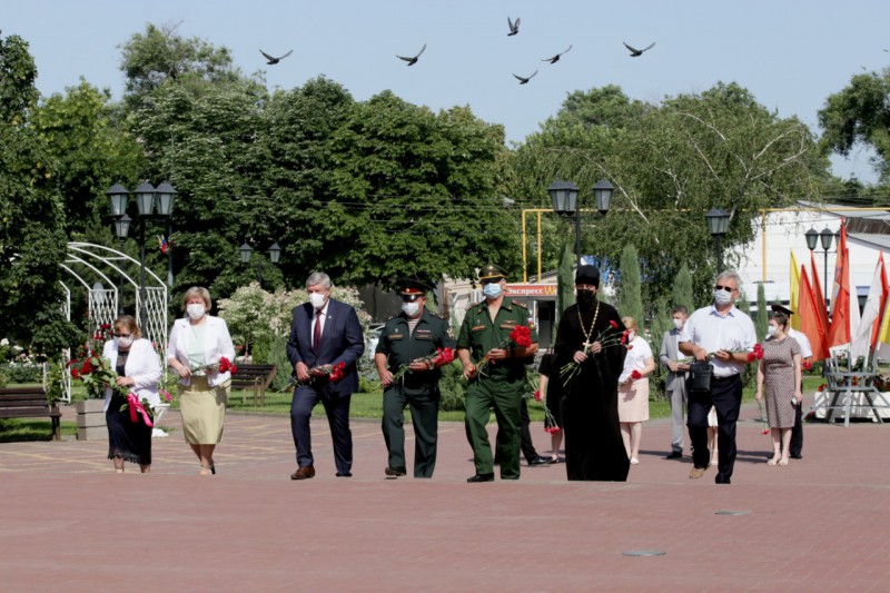 22 июня в День памяти и скорби — 80-ю годовщину начала Великой Отечественной войны, благочинный приходов Нижнедонского округа протоиерей Сергий Яценко возложил цветы к Вечному огню на площади 50-летия Победы, на мемориале «Аллея памяти» и к братской могиле войной Великой Отечественной войны.