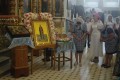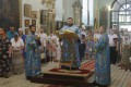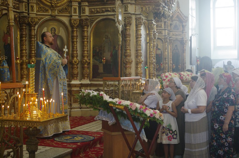 По завершении богослужения духовенство и прихожане поклонились перед святынями – иконой с частицей мощей святого благоверного князя Александра Невского, иконой с частицей мощей святого равноапостольного князя Владимира и мощевиком с частицей мощей святой блаженной Матроны Московской, которые 16 июля прибыли в храм для крестного хода, посвященного 10-летию создания Шахтинской епархии.