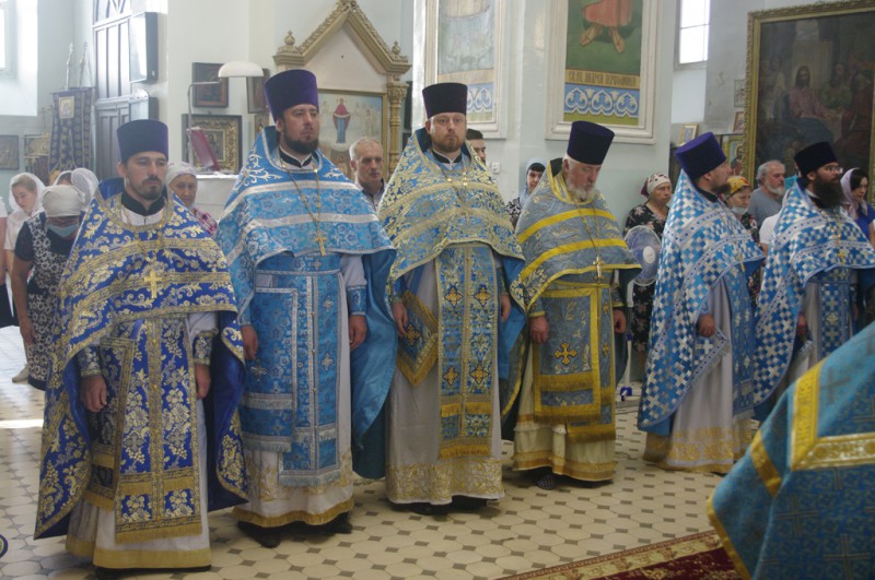 В праздничный день архипастырю сослужили секретарь епархии иерей Александр Теличкин, председатель Епархиального суда протоиерей Сергий Явиц, благочинный приходов Донецкого округа иерей Владимир Татаркин, настоятель Донецкого Успенского архиерейского подворья ст. Гундоровской протоиерей Глеб Гладышев, настоятель храма первомученика архидиакона Стефана сл. Ефремово-Степановка протоиерей Михаил Вишневецкий, настоятель храма в честь святителя Тихона Задонского пос. Тарасовский протоиерей Игорь Колистратов, председатель епархиального отдела по взаимоотношениям Церкви с обществом протоиерей Роман Амплеев, председатель епархиального отдела религиозного образования, благочинный Нижнедонского округа протоиерей Сергий Яценко, настоятель храма блаженной Матроны Московской г. Донецка протоиерей Александр Барановский, настоятель храма в честь Донской иконы Божией Матери сл. Шарпаевка иерей Андрей Коршунов, настоятель храма Рождества Христова ст. Митякинской иерей Антоний Можаев и диакон Трофим Осяк.