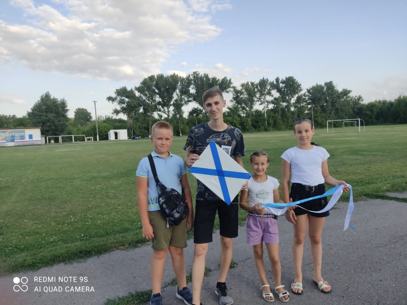В завершение, дети сделали своими руками и запустили в небо воздушного змея с изображением Андреевского флага.