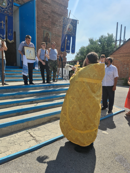 По завершении богослужения по обычаю состоялся крестный ход, после чего священник Александр обратился к молящимся с приветственным словом.