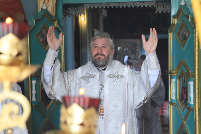 Его Преосвященству сослужили настоятель архиерейского подворья протоиерей Георгий Болоцков настоятель храма святого благоверного князя Александра Невского г. Шахты иерей Георгий Болоцков и диакон Трофим Осяк.