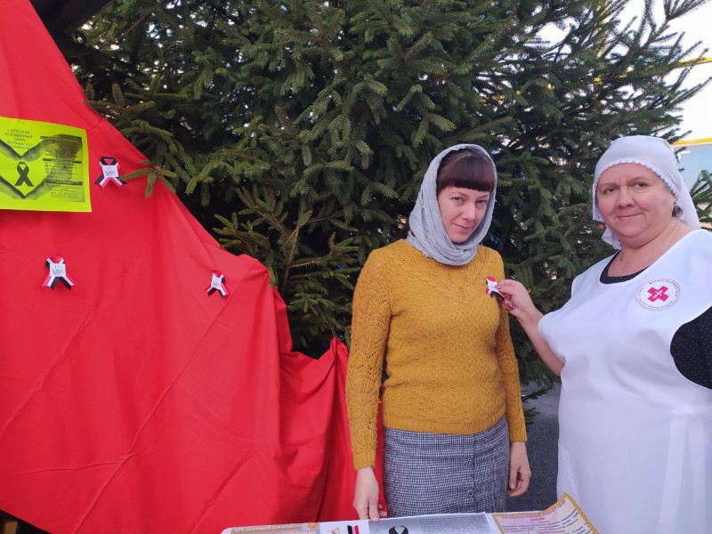 По благословению благочинного приходов Нижнедонского округа протоиерея Сергия Яценко, добровольцы благочиния и сестры Марфо - Мариинского Сестричества храма Архистратига Михаила п. Каменоломни Октябрьского района, при поддержке Муниципального учреждения здравоохранения, Центральной районной больницы, во Всемирный день борьбы со СПИДом (World AIDS Day), с целью просветительской работы среди жителей Октябрьского района по предотвращению серьезного инфекционного заболевания, провели цикл тематических встреч и мероприятий, раздали буклеты и красные ленточки - символ борьбы со СПИДом, способствующие повышению информированности и грамотности в сфере здоровья.