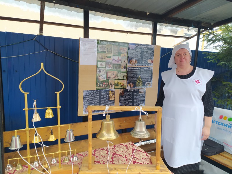 Во время проведения благотворительной ярмарки "По пути в Вифлеем" для детей церковно - приходской Воскресной школы "Благовест" в рамках социально - значимого проекта реализуемого Нижнедонским благочинием на территории Октябрьского района, «Донские перезвоны», прошло знакомство с историей колокольного звона.