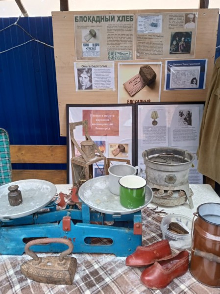 Присутствующие узнали об осаде города на Неве, условиях жизни взрослых и детей, оказавшихся в блокадном городе, о 125-граммовой норме хлеба, о людях, которые сражались со смертью, голодом и холодом. Каждый экспонат выставки воссоздавал обстановку блокадного Ленинграда.