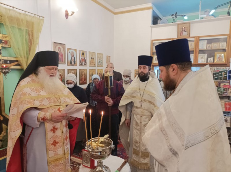 Соборное Богослужение совершили благочинный приходов Нижнедонского округа протоиерей Сергий Яценко, настоятель храма святой мученицы Татианы п. Персиановский иеромонах Николай (Наметышев), настоятель храма святой Троицы г. Шахты протоиерей Павел Шаповалов и клирик храма Архистратига Михаила п. Каменоломни диакон Максим Коваленко.