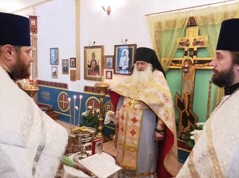Соборное Богослужение совершили благочинный приходов Нижнедонского округа протоиерей Сергий Яценко, настоятель храма святой мученицы Татианы п. Персиановский иеромонах Николай (Наметышев), настоятель храма святой Троицы г. Шахты протоиерей Павел Шаповалов и клирик храма Архистратига Михаила п. Каменоломни диакон Максим Коваленко.