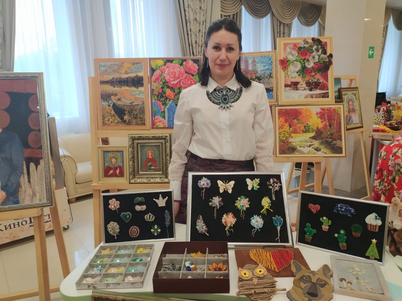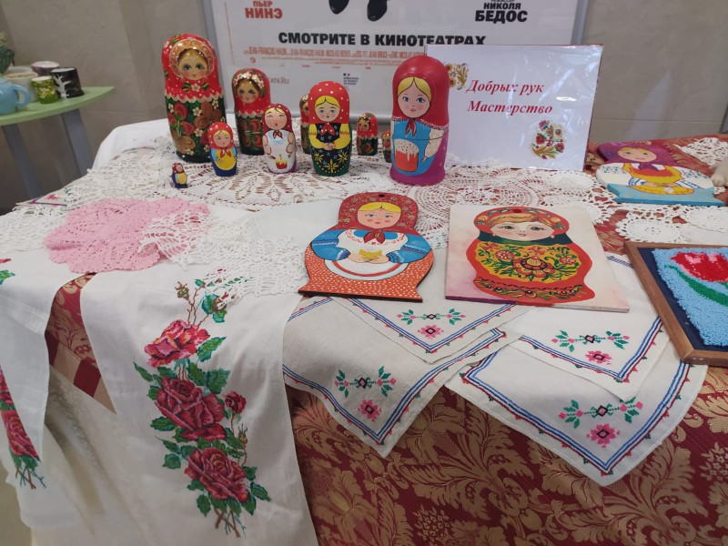 По благословению благочинного приходов Нижнедонского округа протоиерея Сергия Яценко, на выставке мастеров народного творчества, были представлены работы сестёр милосердия Марфо - Мариинского Сестричества храма Архистратига Михаила п. Каменоломни.