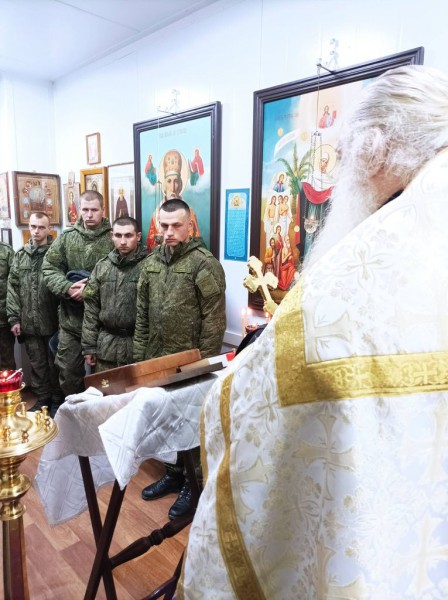 Духовно окормляющий военнослужащих 150-мотострелковой дивизии иеромонах Николай (Наметышев) в молитвенной комнате воинской части совершил молебен о восстановлении мира. Вместе со священником молились военнослужащие.