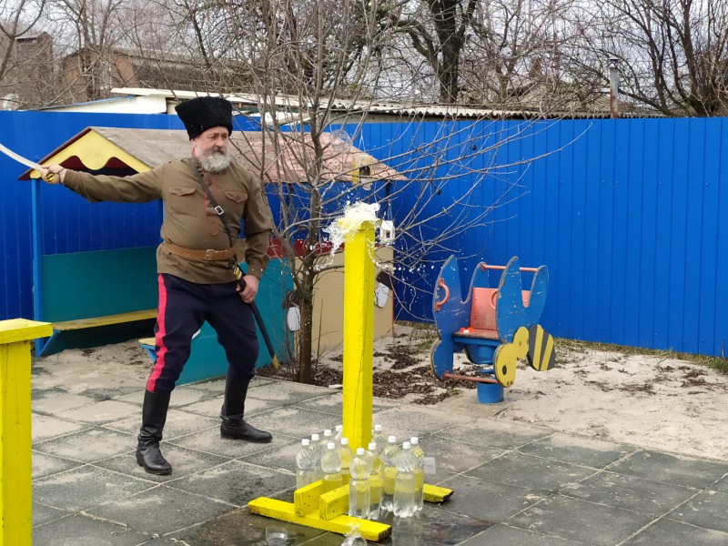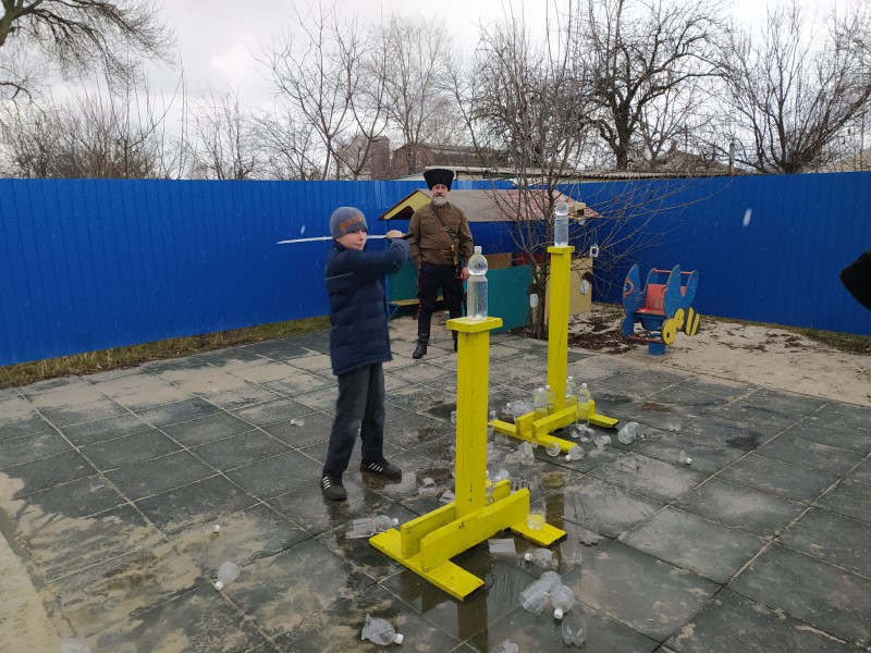 Турнир для молодых казачат провел и.о. командира пешей казачьей дружины Октябрьского района В.Д. Черный и казаки Нижнедонского юрта, входящие во Всероссийскую общественную организацию по рубке шашкой «Казарла».