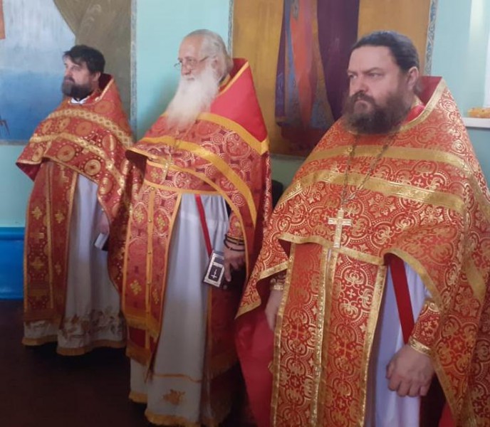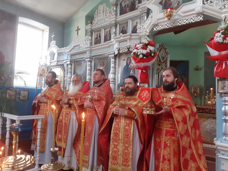 Божественную Литургию совершили: благочинный приходов Нижнедонского округа протоиерей Сергий Яценко, настоятель храма святителя Тихона Задонского ст. Кривянской протоиерей Константин Федосеев, настоятель Покровского храма ст. Кривянской иерей Александр Шапкин, настоятель храма святой мученицы Татианы п. Персиановский иеромонах Николай (Намётышев), настоятель Троицкого храма х. Ягодинка протоиерей Николай Филимонов, настоятель храма Успения Пресвятой Богородицы х. Алексеевка иеромонах Олег (Васильченко) и клирик храма Архистратига Михаила п. Каменоломни диакон Максим Коваленко.