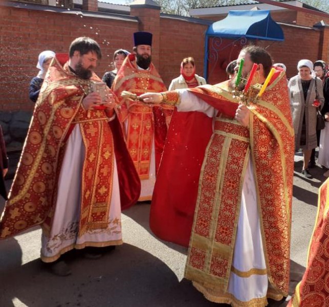 По традиции пасхальной недели после Литургии был совершен крестный ход с чтением воскресных евангелий.