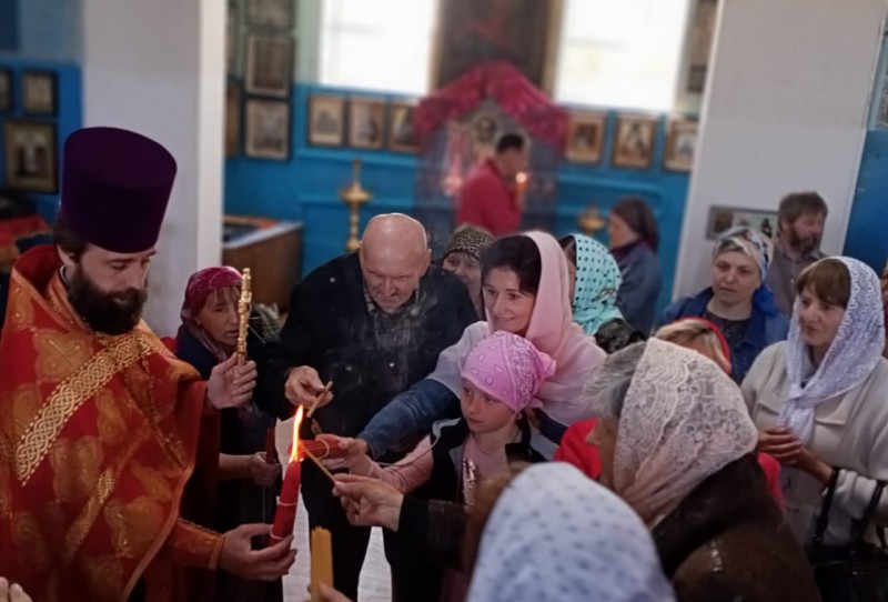 В храме Архистратига Михаила п. Каменоломни Октябрьского района верующие торжественно встретили Благодатный огонь.