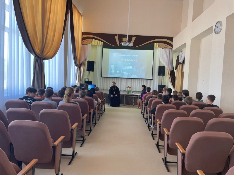 В рамках мероприятий «Деловой ланч. Диалог на равных» в МБОУ "Школа - детский сад №18" хутора Яново-Грушевский Октябрьского района, прошла встреча учащихся школы с председателем епархиального Отдела религиозного образования, благочинным приходов Александровск - Грушевского и Нижнедонского округов протоиереем Сергием Яценко.