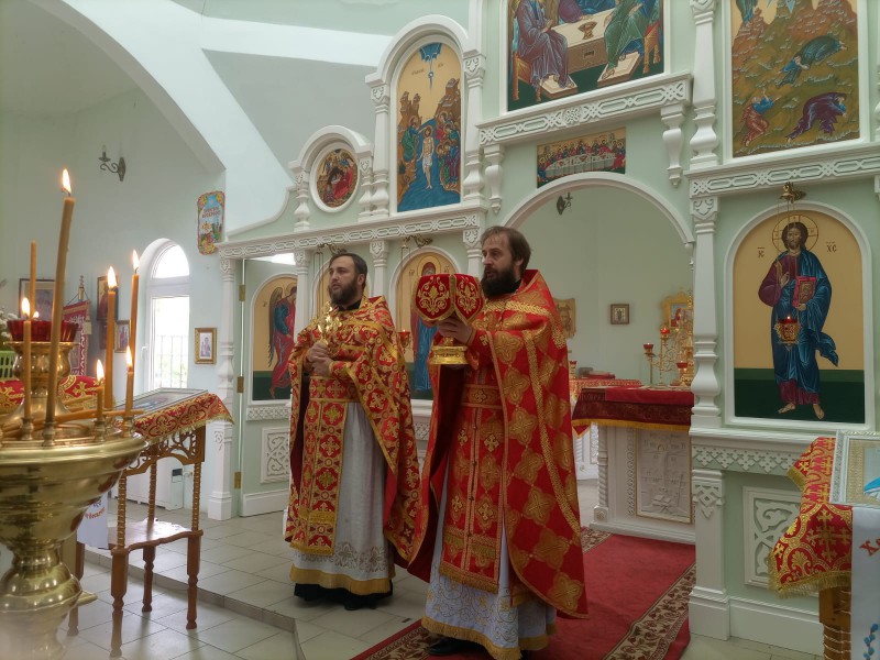 Обращаясь к молящимся, протоиерей Сергий рассказал о подвигах святого великомученика Георгия Победоносца и о его молитвенном заступничестве православному воинству и народу в годы Великой Отечественной войны.