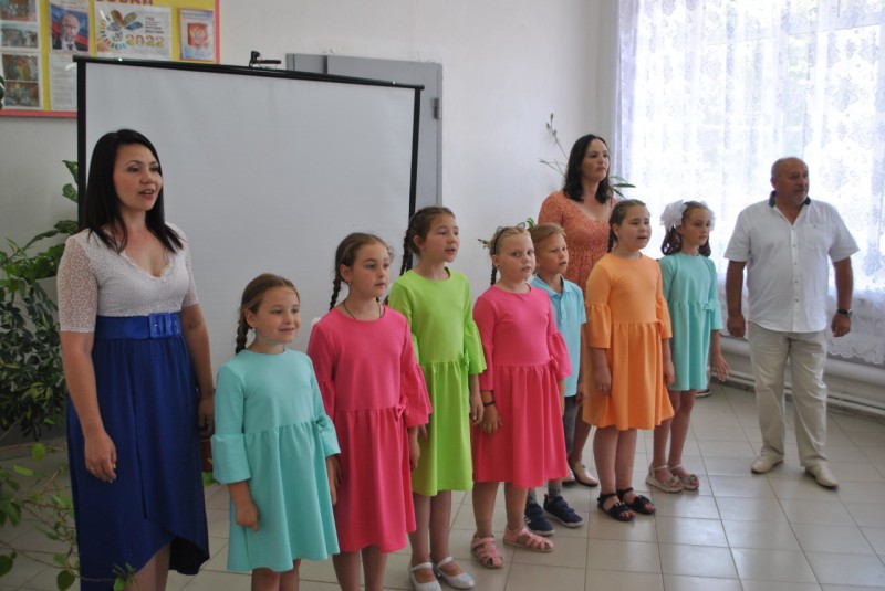 В исполнении ансамбля «Созвездие» прозвучали песни о Родине, любви, детстве. Примечательно, что в состав этого ансамбля входят не только ученики, но и их родители.