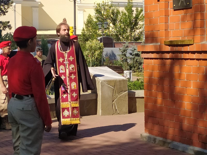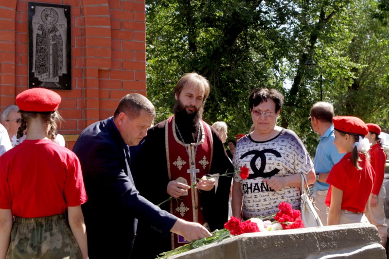 Протоиерей Сергий совершил панихиду, после чего участники митинга почтили память погибших минутой молчания и возложили венки и цветы к мемориалу погибших героев.