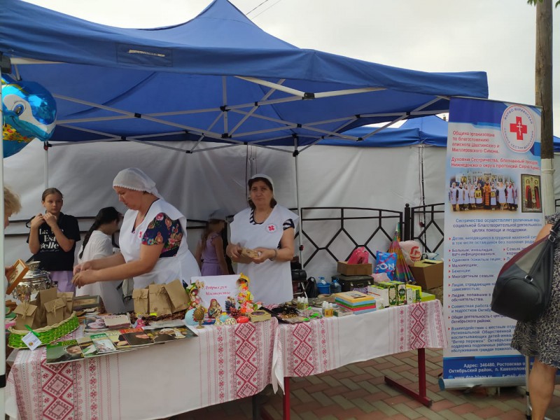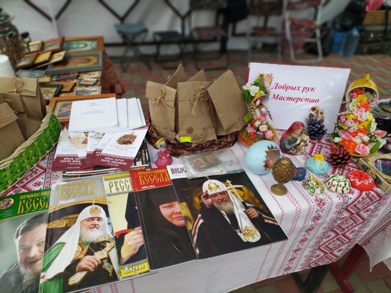 Для жителей поселения и гостей праздника сестры милосердия Марфо - Мариинского Сестричества храма Архистратига Михаила п. Каменоломни подготовили выставку декоративно-прикладного искусства "Добрых рук мастерство", в которую постарались вложить духовно-эстетические ценности православной культуры и раздаточный материал духовной литературы.