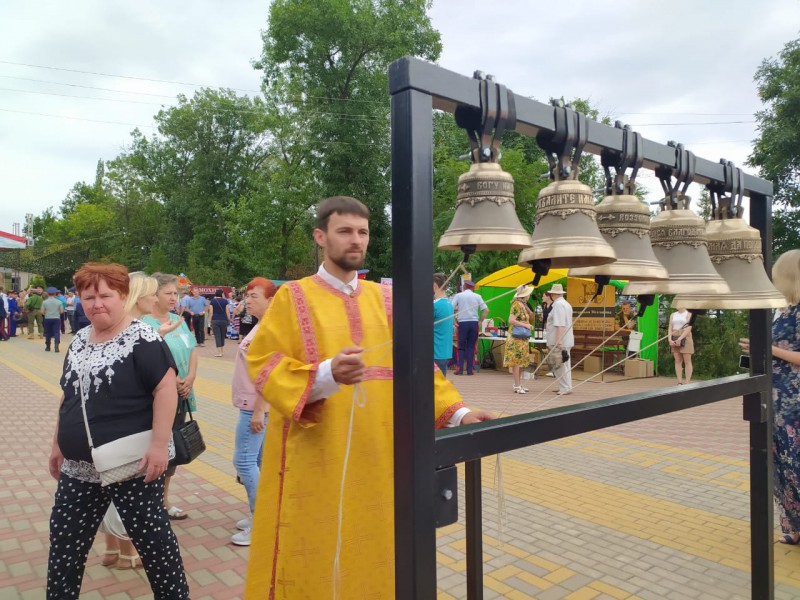 По благословению благочинного приходов Нижнедонского округа протоиерея Сергия Яценко, с целью возрождения древних традиций колокольного искусства, не задолго до фестиваля, в поселении установили малую передвижную звонницу и в рамках реализации в Октябрьском районе социальнозначимого проекта «Донские перезвоны» порадовали собравшихся праздничным колокольным звоном.