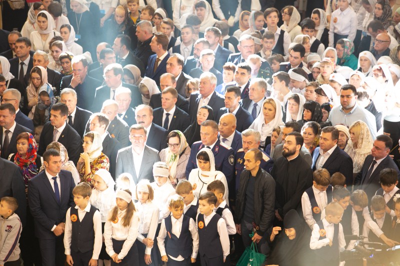 Среди молившихся были настоятельница Иверского женского монастыря г. Ростова-на-Дону игумения Рахиль (Ковалева) с сестрами обители, преподаватели и студенты Донской духовной семинарии, казаки Платовской сотни Южно-Российского государственного политехнического университета имени М.И. Платова, воспитанники Свято-Георгиевской православной средней общеобразовательной школы г. Ростова-на-Дону, благотворители и строители собора Рождества Пресвятой Богородицы.