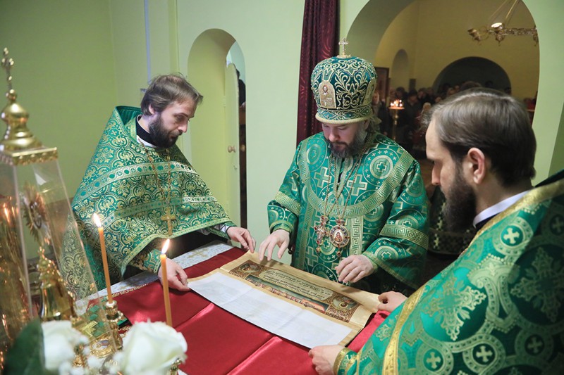Преосвященнейший владыка совершил причащение и поздравил настоятеля и приход с днем небесного покровителя их храма. В архипастырском слове епископ Симон напомнил о духовных подвигах святой Ксении и о важности нам христианам обращать свои молитвы ко святым Божиим угодникам.