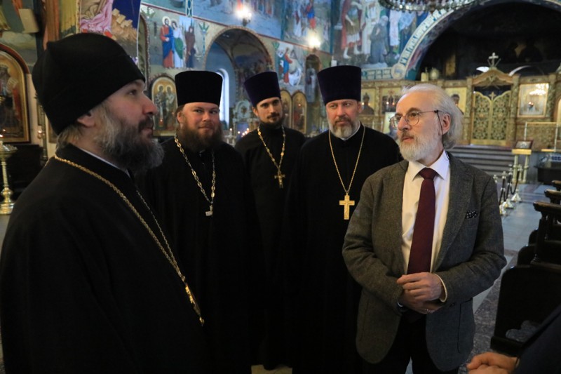 Владыка Симон тепло приветствовал Александра Леонидовича в своем рабочем кабинете, после чего пригласил гостя на ознакомительную экскурсию в Покровский кафедральный собор.