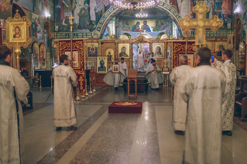 В Покровском кафедральном соборе города Шахты торжественную службу совершил епископ Шахтинский и Миллеровский Симон в сослужении настоятеля собора иерея Александра Теличкина и соборного духовенства.