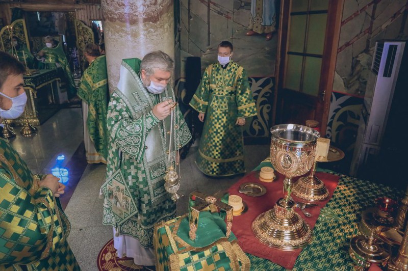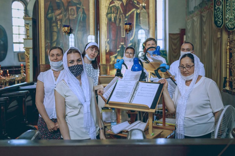 За богослужением пел хор Покровского кафедрального собора под управлением Анастасии Логвиновой.