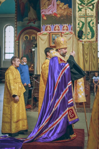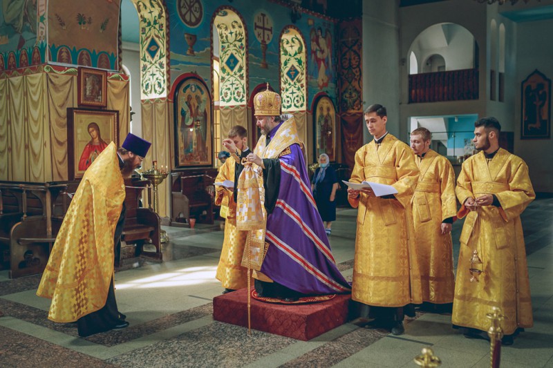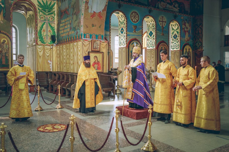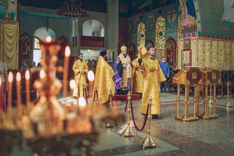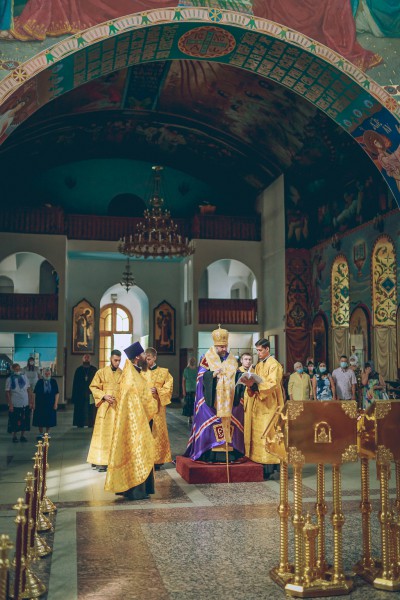 В памятный для епархии день Преосвященнейший епископ Симон совершил благодарственный молебен в Покровском кафедральном соборе г. Шахты. Вместе с архипастырем молились настоятель собора иерей Александр Теличкин, диакон Даниил Зырянов и прихожане главного храма епархии.