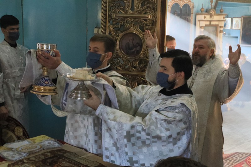 Песнопения богослужения исполнил хор под управлением регента Анастасии Логвиновой.
