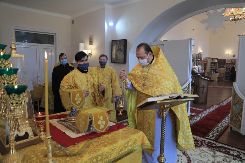 Богослужебные песнопения исполнил хор под управлением регента Анастасии Логвиновой.