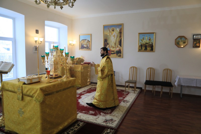 Богослужение совершили председатель епархиального отдела религиозного образования протоиерей Сергий Яценко, настоятель храма при институте протоиерей Роман Амплеев и клирик Покровского кафедрального собора г. Шахты диакон Трофим Осяк.