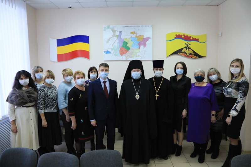 В режиме онлайн связи в заседании приняли участие епископ Шахтинский и Миллеровский Симон, глава Администрации г. Шахты Андрей Ковалев, заместитель главы Администрации Ольга Тхак, председатель религиозного отдела образования епархии протоиерей Сергий Яценко и директора общеобразовательных школ г. Шахты.