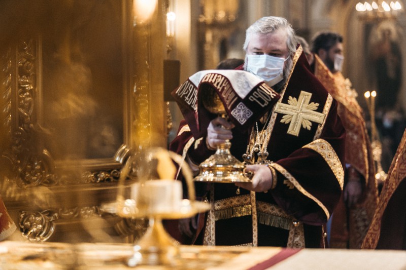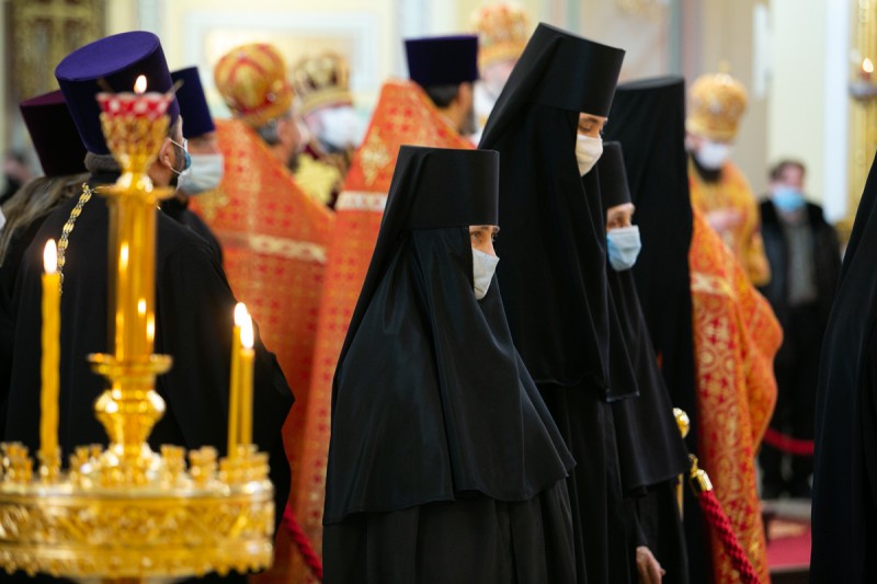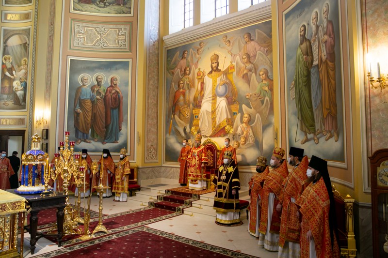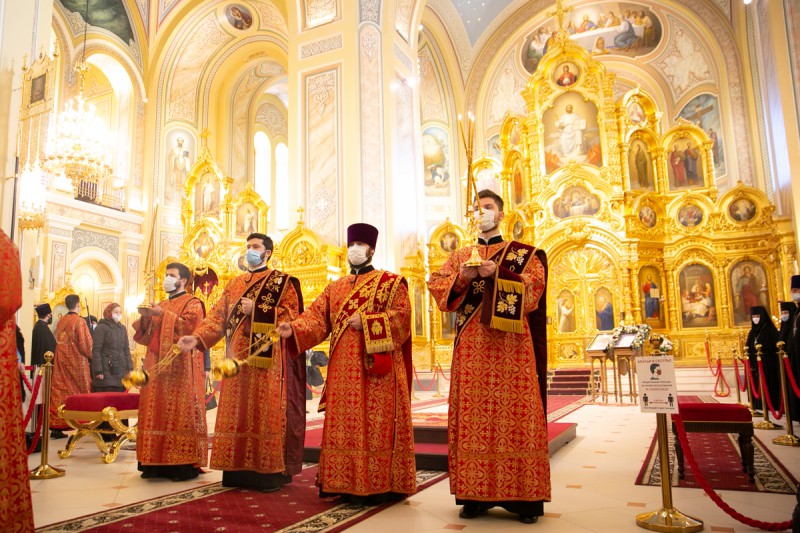 Песнопения богослужения исполнил хор собора под управлением протодиакона Владимира Зубрицкого. За Литургией молились настоятельница Иверского женского монастыря игумения Рахиль (Ковалева) с сестрами обители, братия Донского Старочеркасского Ефремовского мужского монастыря, прихожане храма и паломники.