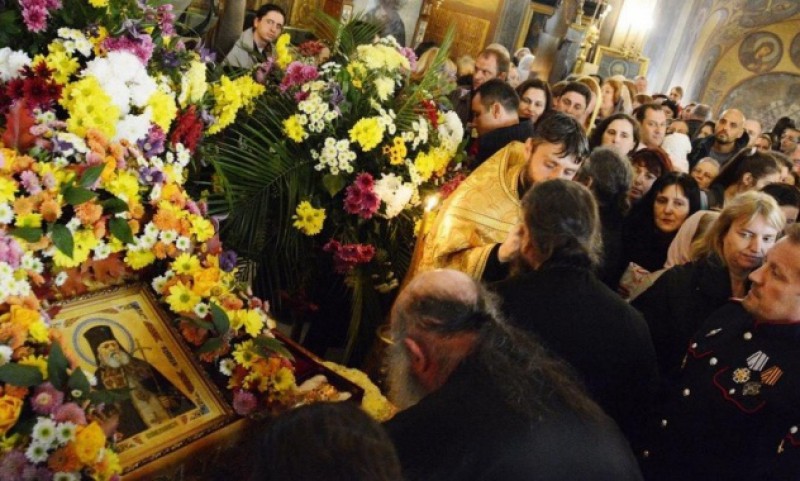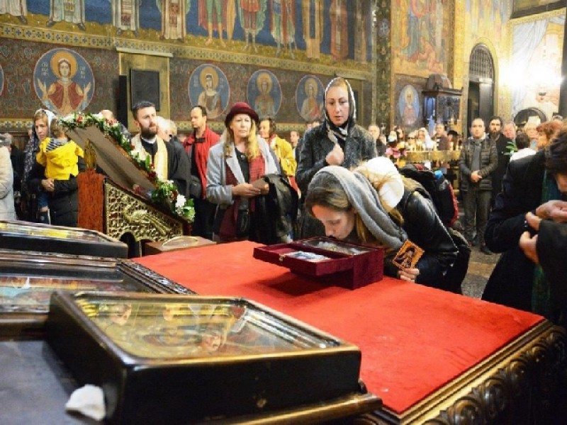 Крестным ходом мощи святого были перенесены в кафедральный собор великомученицы Недели (Кириакии), где перед ними был совершен краткий молебен, который возглавил епископ Богородский Антоний в сослужении епископа Браницкого Григория и клириков храмов болгарской столицы.