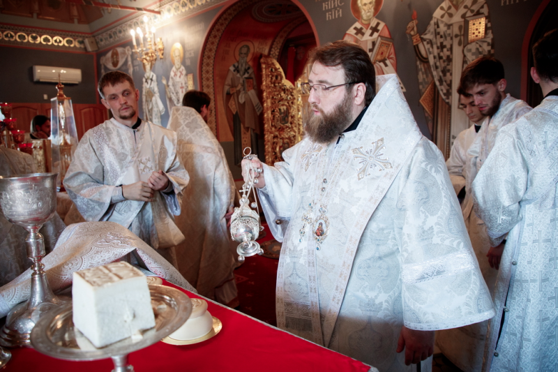За Литургией митрополит Игнатий совершил хиротесию во иподиакона и хиротонию во диакона выпускника Саратовской православной духовной семинарии Артемия Болдырева.