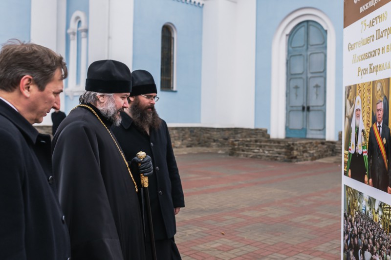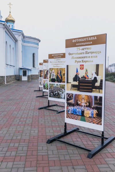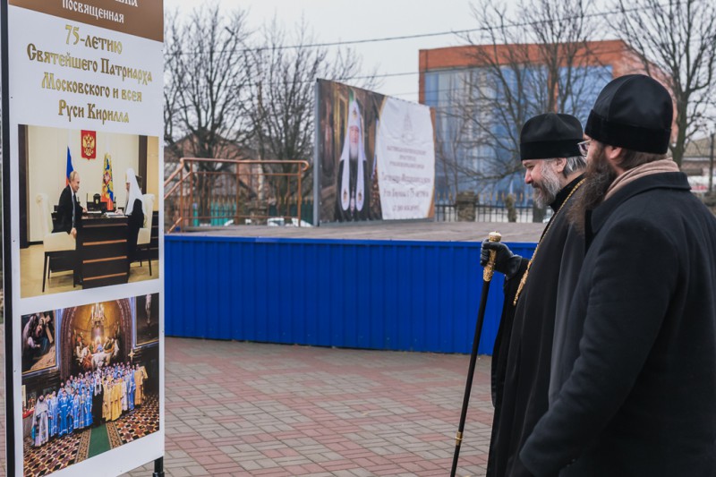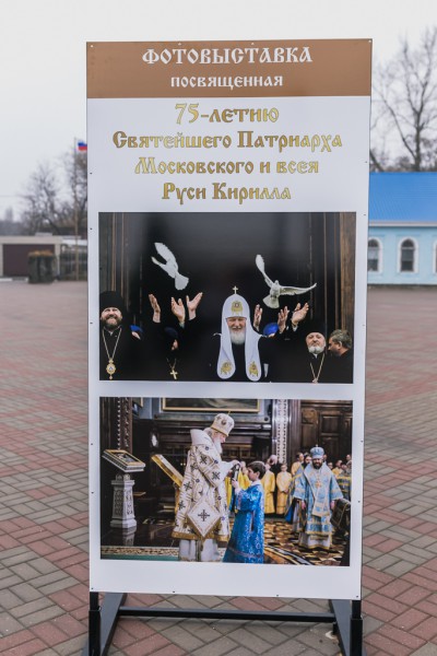 В праздничный день после Божественной литургии в Покровском кафедральном соборе города Шахты, на Соборной площади была открыта фотовыставка, посвященная служению Святейшего Патриарха.