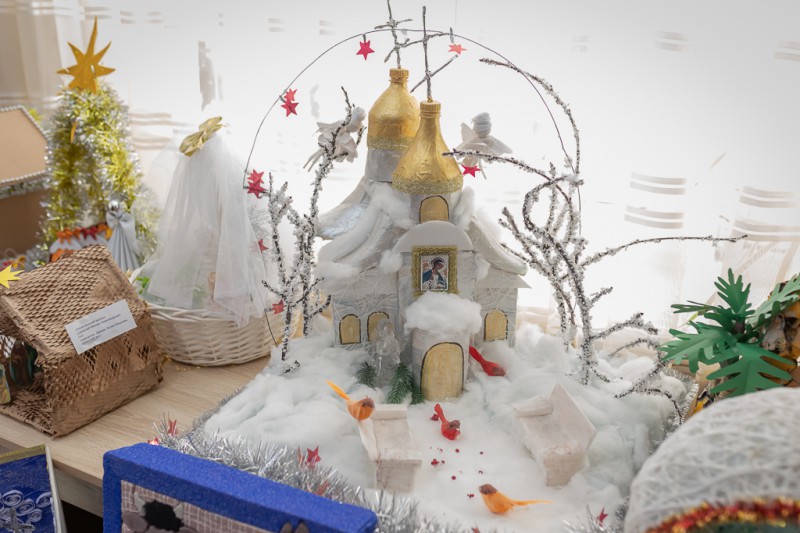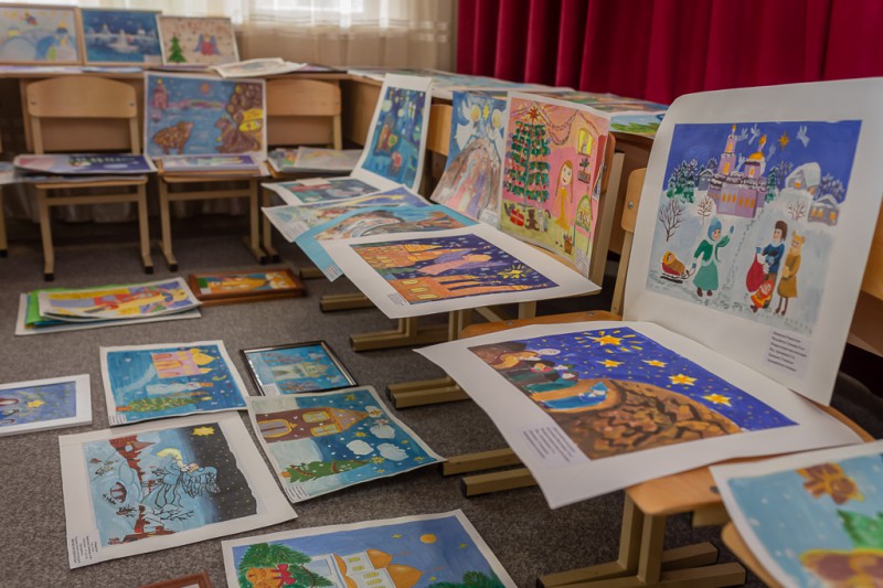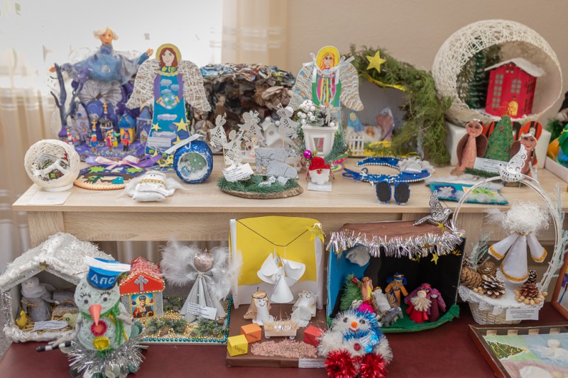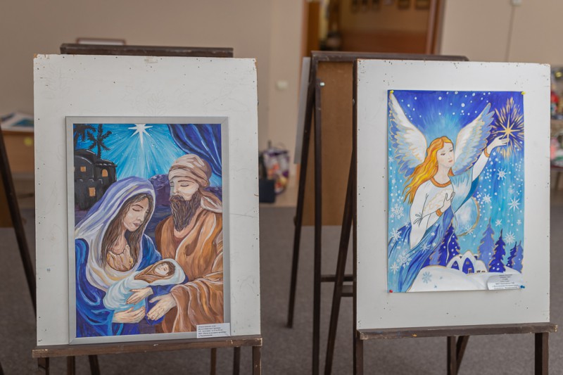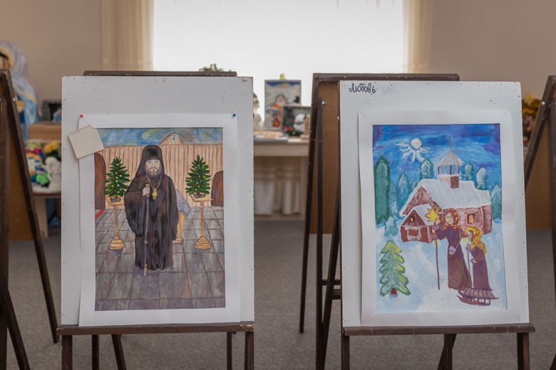 Архиерей ознакомился с детскими работами, по-своему тепло передающими атмосферу праздника Рождества Христова.