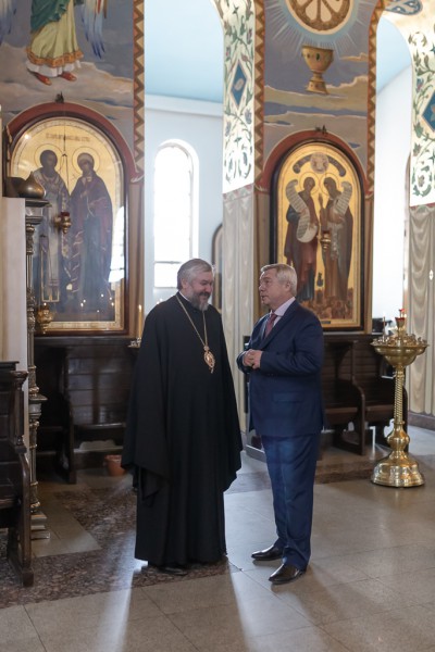 Встреча началась с посещения Покровского кафедрального собора. В главном храме епархии глава региона поставил свечи перед образами и поклонился святыням. Архиерей рассказал Губернатору о планах дальнейшего благоустройства собора и Соборной площади.