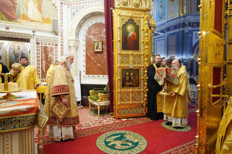 Его Святейшеству сослужили: постоянные члены Священного Синода Русской Православной Церкви — митрополит Санкт-Петербургский и Ладожский Варсонофий, Патриарший наместник Московской митрополии митрополит Крутицкий и Коломенский Павел, председатель Отдела внешних церковных связей Московского Патриархата митрополит Волоколамский Антоний, Патриарший экзарх всея Беларуси митрополит Минский и Заславский Вениамин; члены Священного Синода и Высшего Церковного Совета, сонм архиереев Русской Православной Церкви.