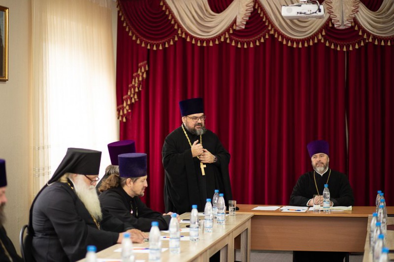 С докладом на тему «Глобальные вызовы современности и духовный выбор человека» выступил протоиерей Василий Хадыкин. Протоиерей Александр выступил с докладом по духовному окормлению казачьих образовательных учреждений. Духовникам были даны подробные рекомендации,инструкции и советы для успешной работы в деле духовно-нравственного и военно-патриотического воспитания казачьей молодежи.