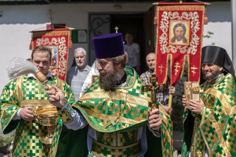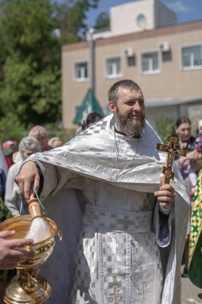 Иерей Илья преподал прихожанам первое пастырское благословение.