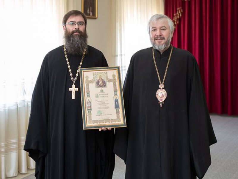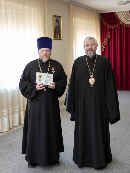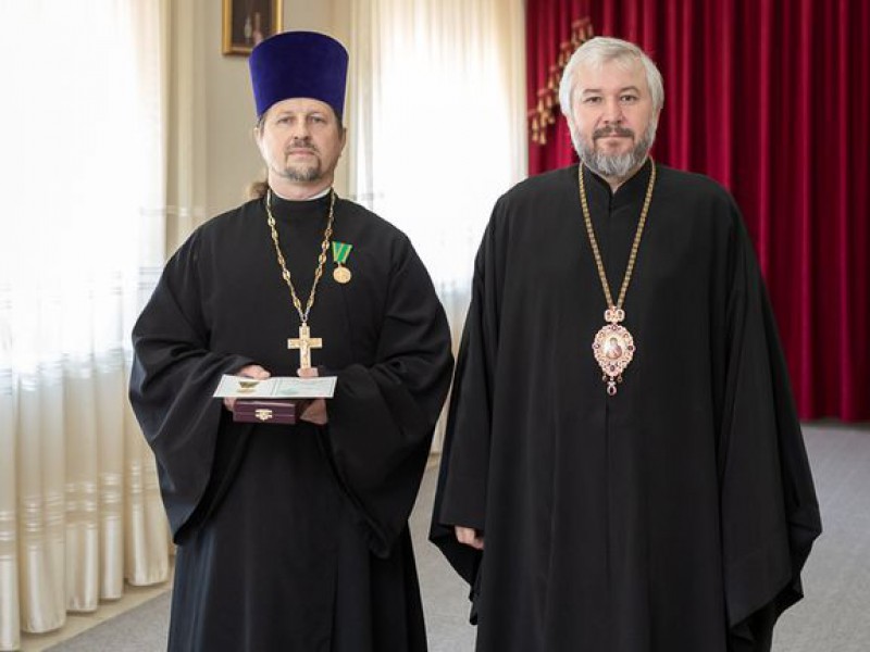Во внимание к трудам на благо Святой Церкви и в связи с 20-летием служения в сане пресвитера Медалью Ордена Русской Православной Церкви благоверного князя Димитрия Донского награжден: