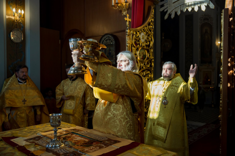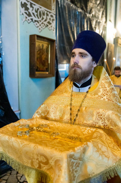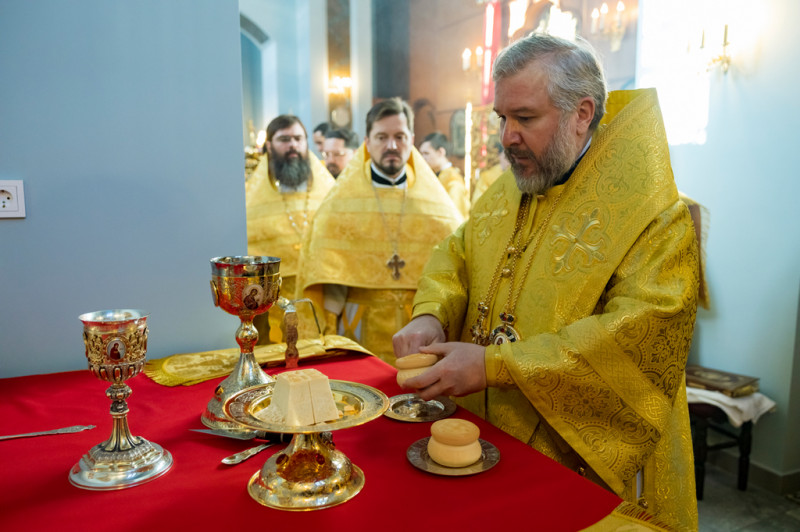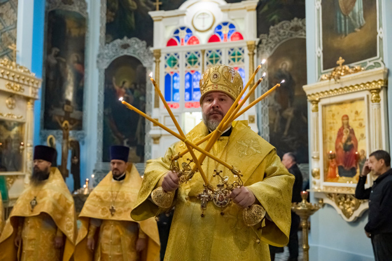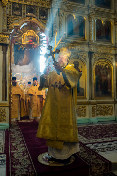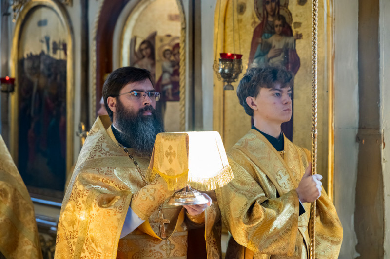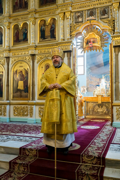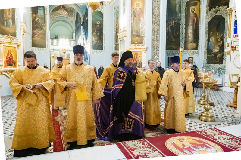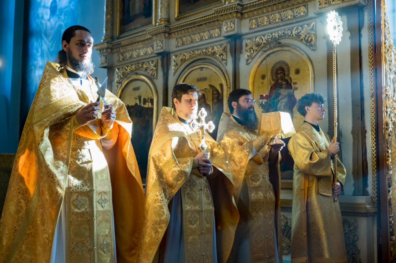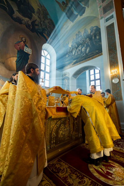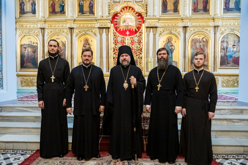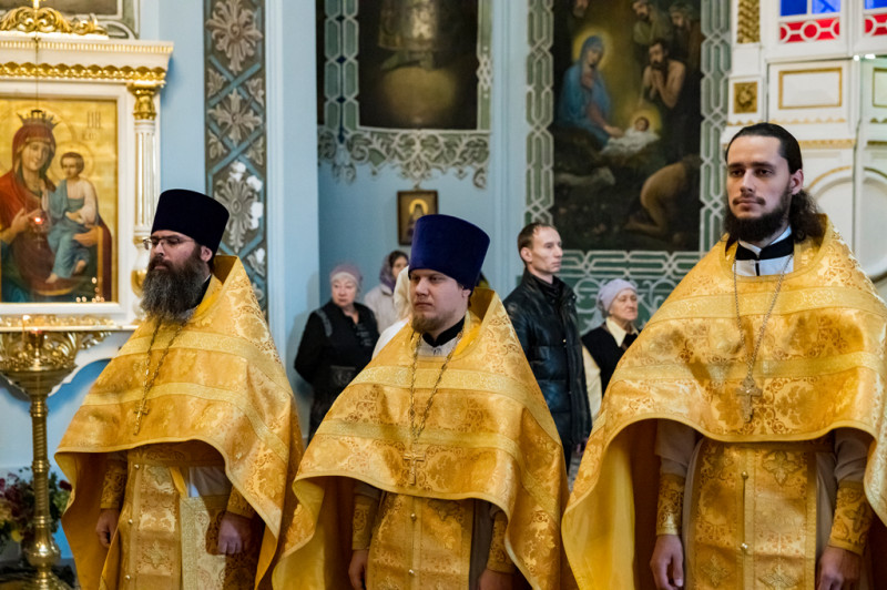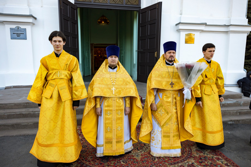 Его Преосвященству сослужили секретарь Саратовского епархиального управления, настоятель собора иерей Александр Чеботарев, секретарь Шахтинской епархии иерей Александр Теличкин, иерей Михаил Дубянский и духовенство Саратовской епархии.