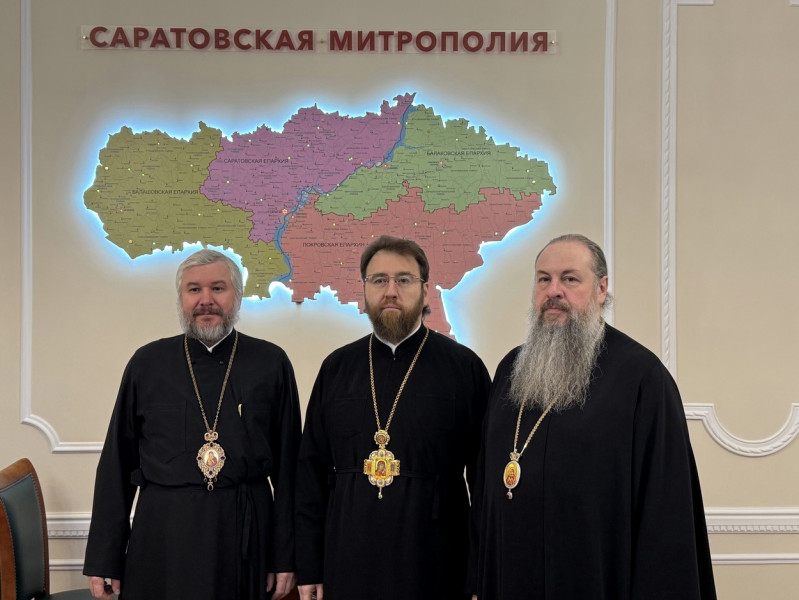 25 ноября в Саратовском епархиальном управлении прошла встреча митрополита Саратовского и Вольского Игнатия с митрополитом Пензенским и Нижнеломовским Серафимом и епископом Шахтинским и Миллеровским Симоном. 25 лет назад, в 1999 году, архиереи окончили Саратовскую духовную семинарию и в этот день прибыли в Саратов на соборное богослужение выпускников СПДС. Участниками встречи также стали другие выпускники духовной школы.