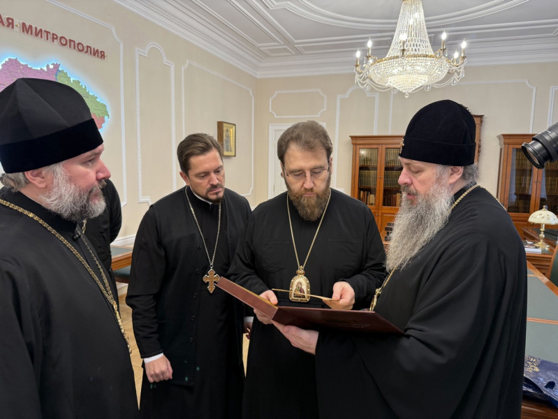 Митрополит Игнатий тепло поприветствовал гостей, показал им здание епархиального управления, где в годы их учебы располагалась Саратовская семинария, а также вновь открытый крестовый храм священномученика Гермогена, епископа Тобольского (Саратовского и Царицынского).