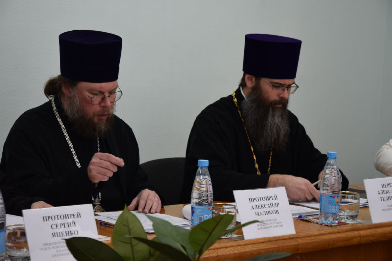 В совещании приняли участие епископ Шахтинский и Миллеровский Симон, заместитель председателя Законодательного Собрания Ростовской области – председатель комитета по аграрной политике, природопользованию, земельным отношениям и делам казачества Вячеслав Николаевич Василенко, депутат Законодательного Собрания Ростовской области Ирина Анатольевна Жукова, председатель Городской Думы г. Шахты Максим Александрович Голодов, заместитель главы администрации Шолоховского района по социальным вопросам Сергей Петрович Благородов, секретарь Шахтинской епархии иерей Александр Теличкин, руководитель отдела религиозного образования Шахтинской епархии протоиерей Сергия Яценко, руководитель молодежного отдела протоиерей Александр Маликов, руководитель отдела по церковной благотворительности и социальному служению иерей Владислав Касьянов, благочинный приходов Верхнедонского округа иерей Роман Митяшин, древлехранитель Шахтинской епархии Илья Геннадиевич Шарков.