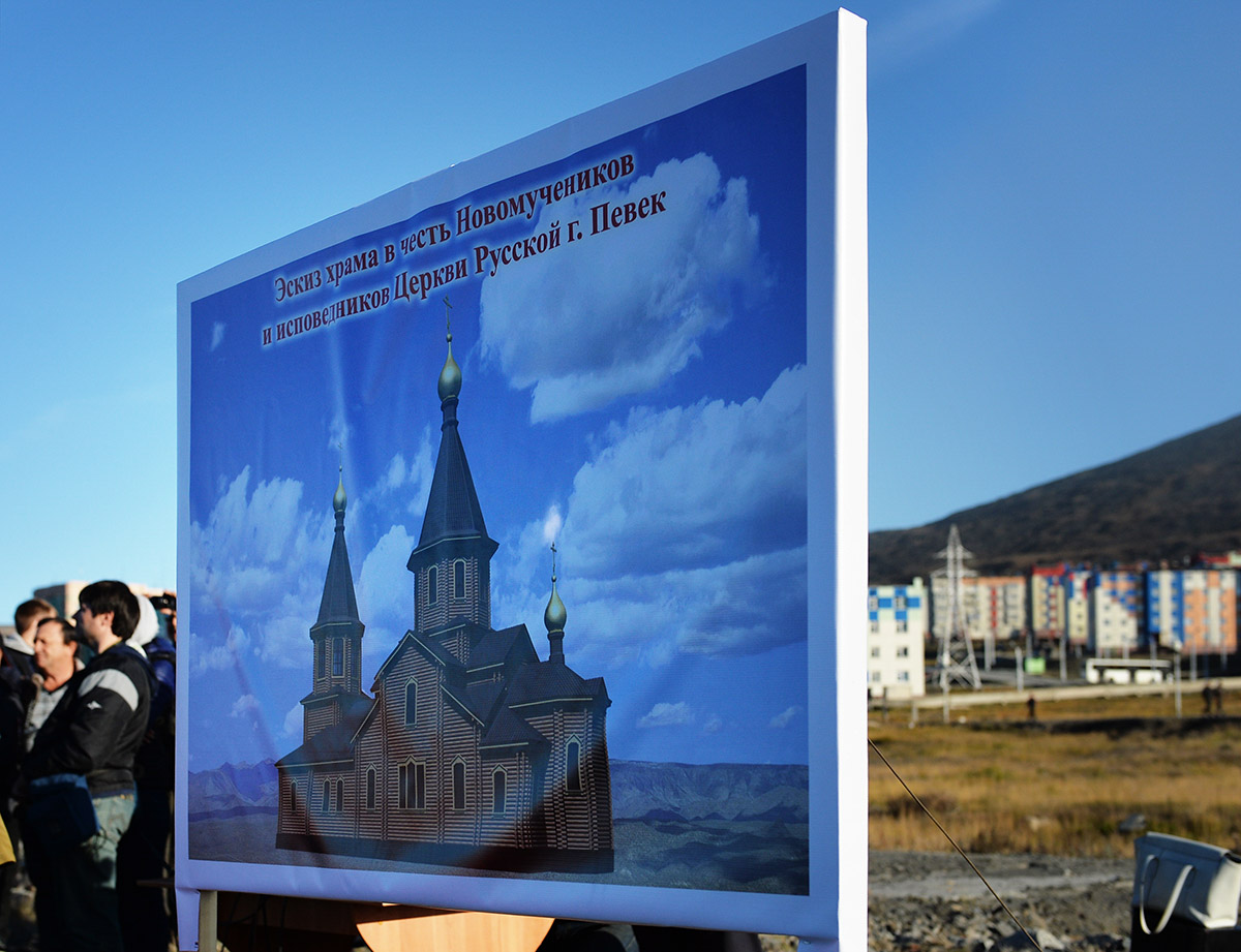 Святейший Патриарх Московский и всея Руси Кирилл совершил чин освящения закладного камня в основание храма святых Новомучеников и исповедников Церкви Русской в городе Певек на Чукотке. Деревянный храм высотой 30 метров рассчитан на 300 прихожан. Ввиду вечной мерзлоты храм будет построен на сваях.