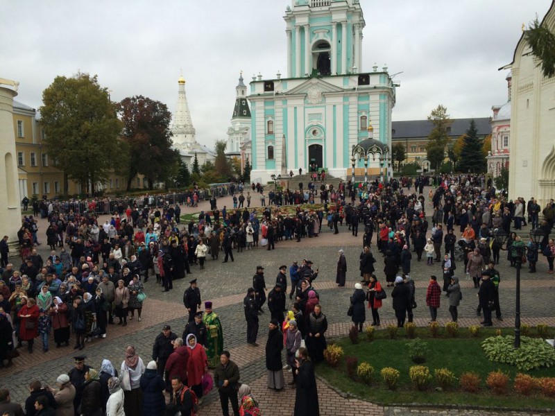 «Всех вас, дорогие владыки, отцы, братья и сестры, паломники, все те, кто сегодня прибыли в обитель преподобного Сергия, чтобы помолиться перед его святыми мощами, вознести к нему молитву, о том, что мы считаем самым важным для себя, с ним разделить свои мысли и его помощи испросить, поздравляю с праздником! Ведь мы прибываем сюда в таком множестве именно потому, что преподобный Сергий помогает. Он слышит наши молитвы и откликается на наши прошения.